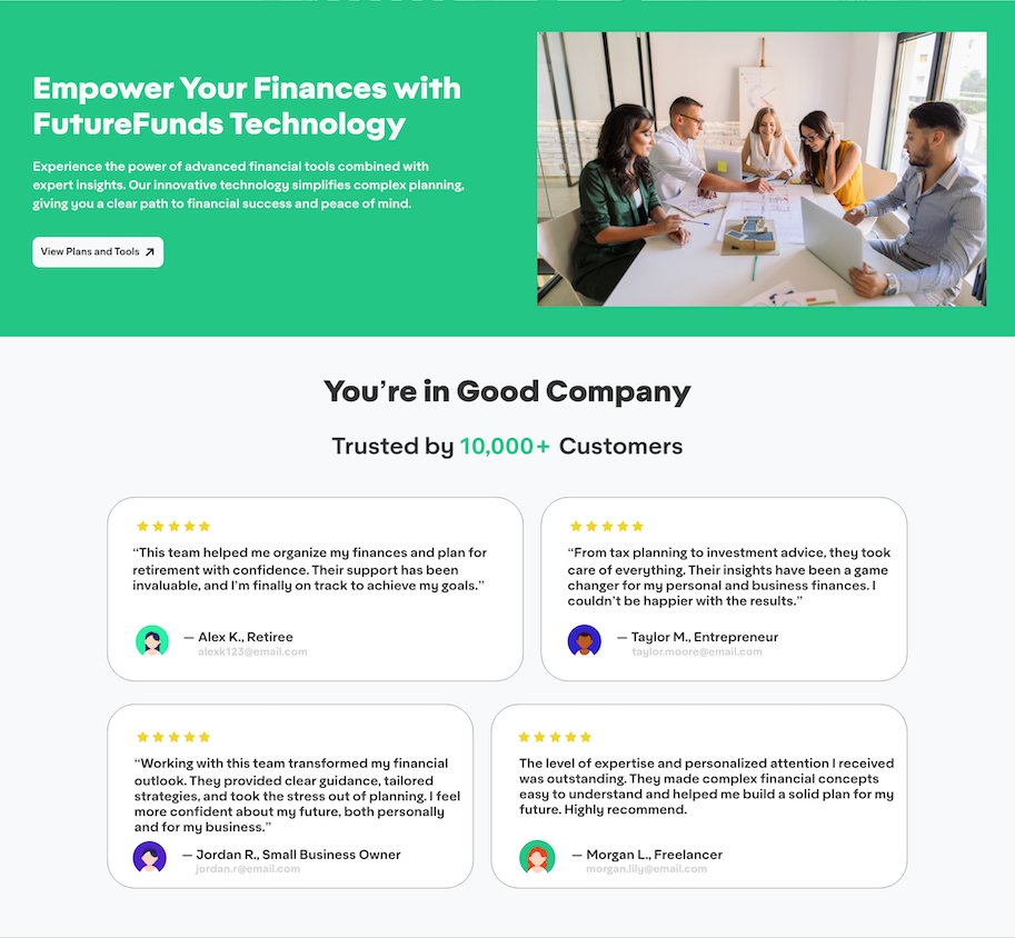 FutureFunds Financial Planning, founded in the early 2000s, is dedicated to empowering young professionals to achieve financial success and security. To better serve the next generation, the company is launching a refreshed online presence with tools tailored to their needs. A new landing page will introduce potential clients to FutureFunds and act as a lead generator by converting visitors into customers.